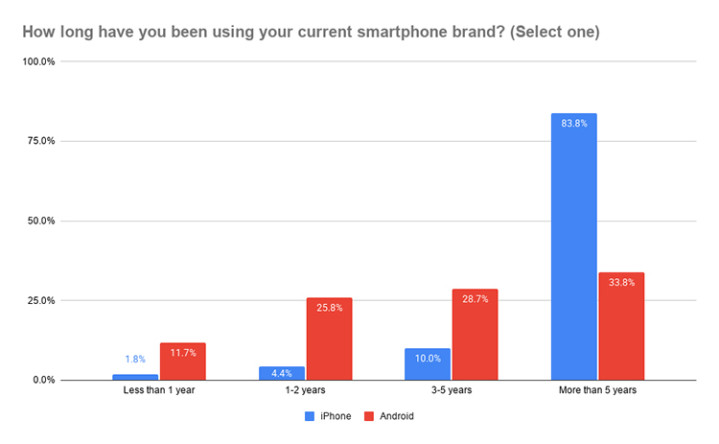 美国的二手回收商SellCell在当地时间16号发布了美国用户智能手机忠诚度调查报告。在对比了2021年、2019年的用户数据后发现,不论是安卓还是苹果,用户的忠诚度都明显上升。