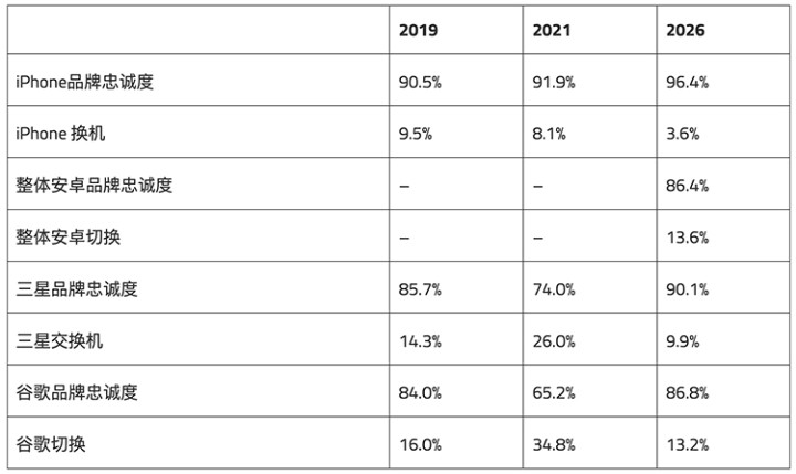 不过在数据上,2021年安卓用户的品牌忠诚度相比2019年是大幅下跌的,好在经过几年的培育,忠诚度又大幅回升了。